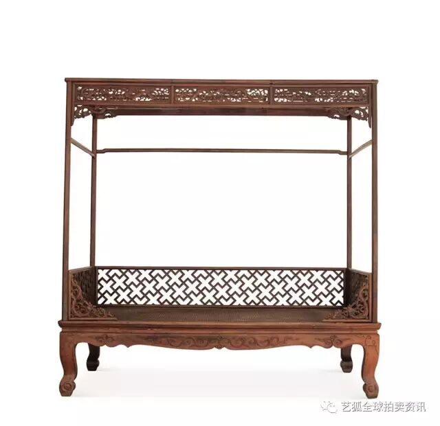 明晚期 黄花梨高束腰簇云纹三弯腿六柱式架子床