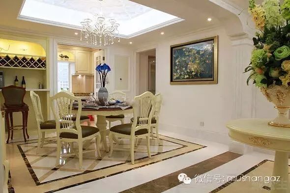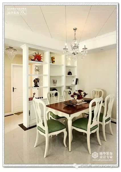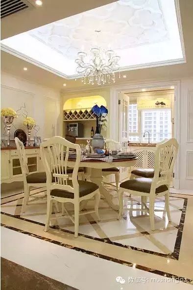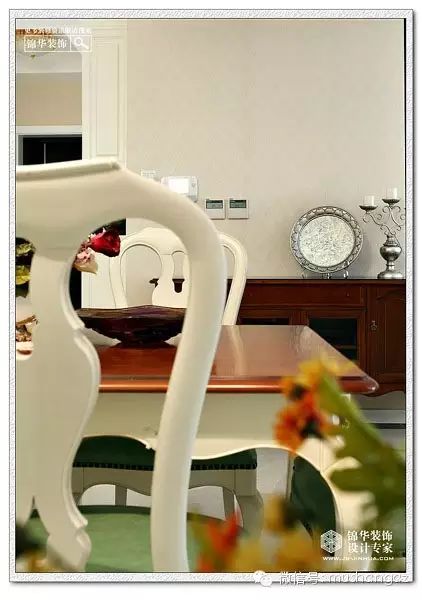 餐厅的设计以木色为主,法式田园韵味的摆件为空间增添一份恬静的舒适感。