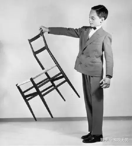 这把总重量不超过1.7公斤的椅子,连小男孩都能用一根手指轻松的提起它。工业化与轻盈感在这把椅子身上得到了完美的结合。