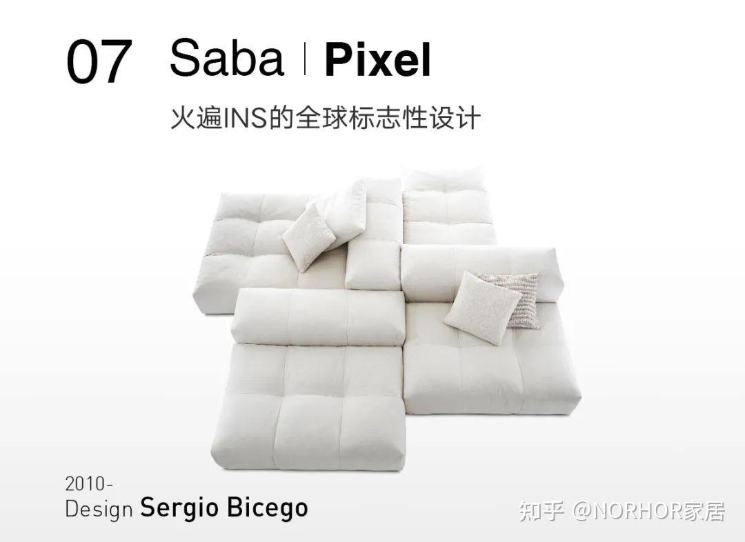 Pixel一经问世,迅速风靡全球,成为Saba最受欢迎的产品,这都要归功于它独创的专用连接件,当大家的概念还停留在坐垫模块的可变,这款沙发已经做到了扶手甚至靠背都可以自由拼搭,在家具上体验手工拼搭积木一样的乐趣。所谓“家居流动性”概念——可大可小,灵活重组,早在10年前就被Saba玩明白了。