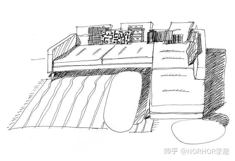 围拥层叠的抱枕是它另外一个特色,慵懒尽致的理念呼之欲出,沙发不再是方正几何的变体,而成为一种气质,一种氛围,一种令人神往的悠闲生活图景。