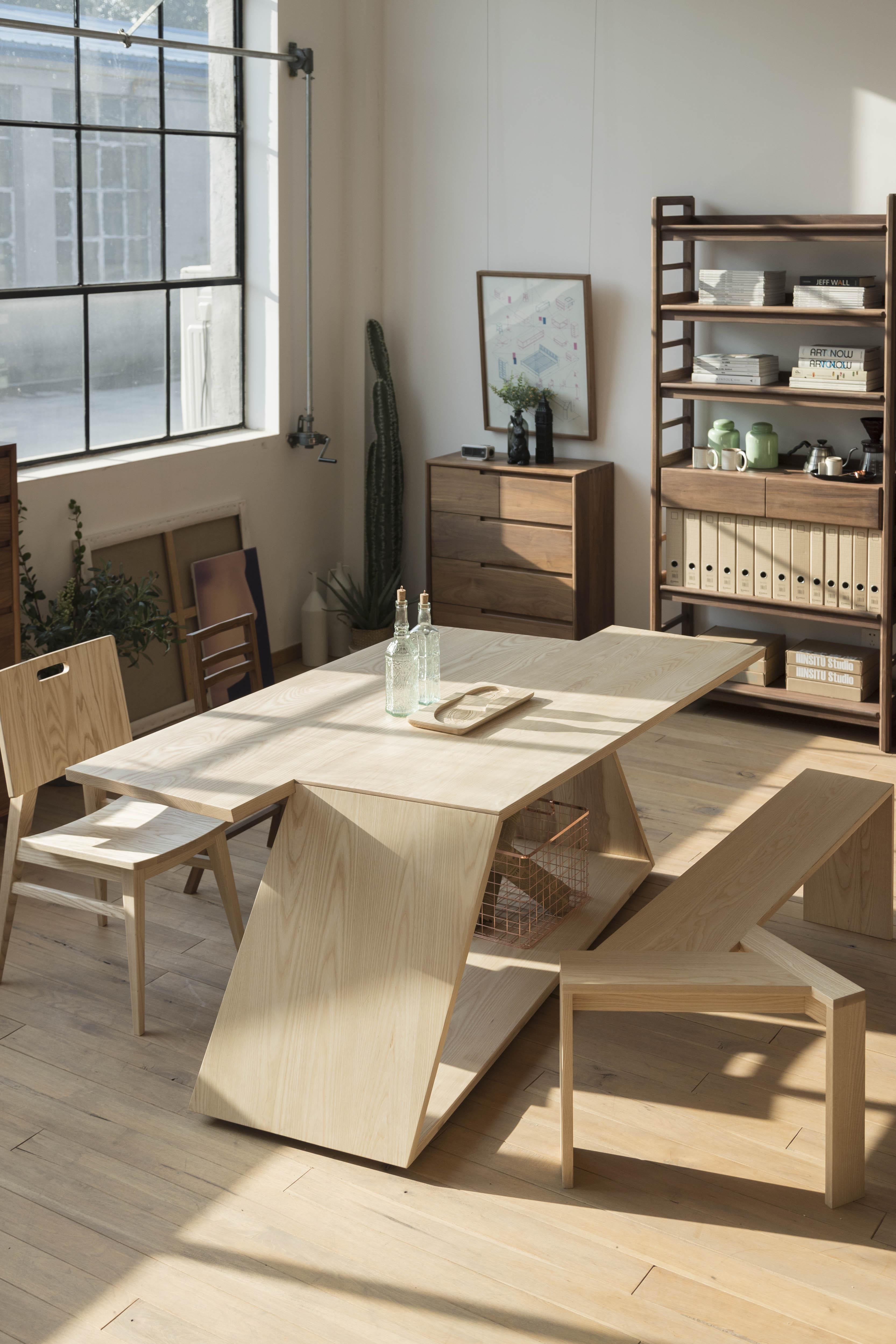 师梵主做白蜡木,樱桃木,榉木,橡胶木等实木家具。今天讲讲它家的白蜡木家具系列: