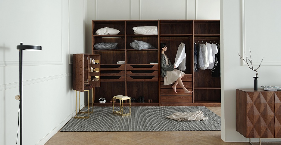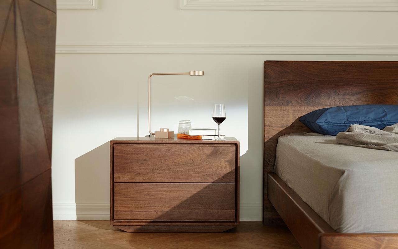 主打黑胡桃木,深色的家具更适合岁月沉甸,精致的曲线设计是一大亮点。