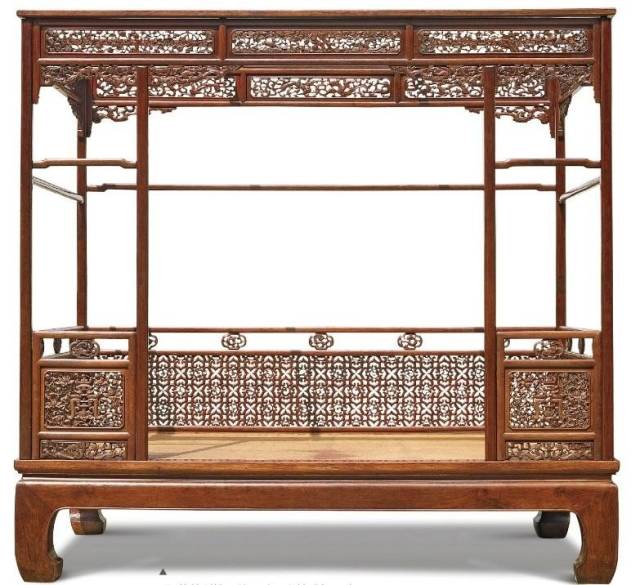 第四名:黄花梨簇云纹马蹄腿六柱式架子床