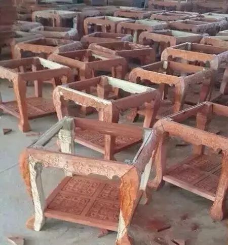 3红木工厂以次充好为什么两件相同材质款式看上去也差不多的红木家具价格竟能相差几倍,甚至十几倍?也有人会说,价格相差那么大,看上去又差不多,那我干嘛不买便宜的?其实黑心的红木工厂为了节省成本,以次料充好料。价格可以相差20%-50%以上。上漆是常见的作假手段。商家将在红木家具里掺杂使用的白皮用漆一笔一笔地将木材的纹理画上去,这种手段可以把白皮画成心材,也可以把刚砍下来的新料画成所谓的红木老料。然后再涂色上漆,一般人很难分辨。这种手段不仅仅让顾客购买到假材料的红木家具。最可怕的是所上的是工业用漆,甲醛和苯等化学原料在里面,放在家里的不环保家具不说,对家人的身体健康也会引起严重的危害。看看下面的几张图,大家就明白了。