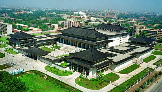 陕西历史博物馆是中国第一座大型现代化博物馆,建筑面积55600平方米,文物库区面积8000平方米,展厅面积11000平方米。馆藏文物上起远古人类初始阶段使用的简单石器,下至1840年前社会生活中的各类器物,时间跨度长达一百多万年。