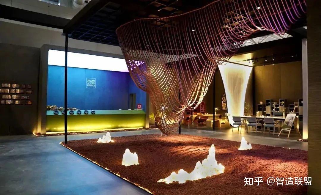 茶荟以“艺术空间”为主题,在产品之上,为大家呈现更具艺术美感的茶家居生活。初入展馆,扑面而来的茶香,悠扬婉转的琴声,多维度感官体验以不同层次的艺术形态融入到空间情境中,让内心得以片刻的安放与升华。中庭流动线条的设计元素彰显着未来感,承载着一种全新的茶家居生活方式。