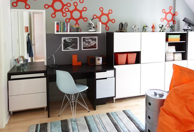 多种门板,多种柜子,组合成不同样式的柜子,既解决了储物功能,又多了一个学习空间。