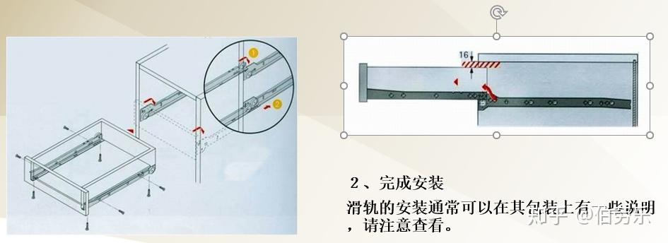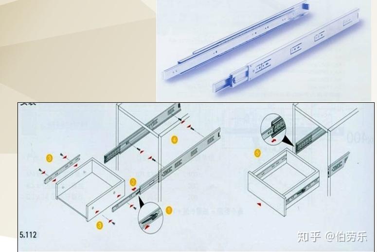 •选购须知 托底式特点:路轨隐藏在抽屉底部,经久耐用,滑动时无摩擦,无噪音,可自闭。