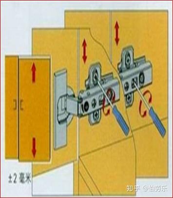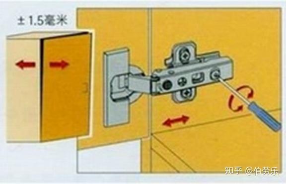 一些铰链除了常见的三维调节外,还可以调节门的关启力,一般以高大沉重的门所需的最大力为基点,应用到窄门和玻璃门上时,就需要调节弹簧力.旋转一圈铰链调节螺丝,弹簧力可以减少至50%.