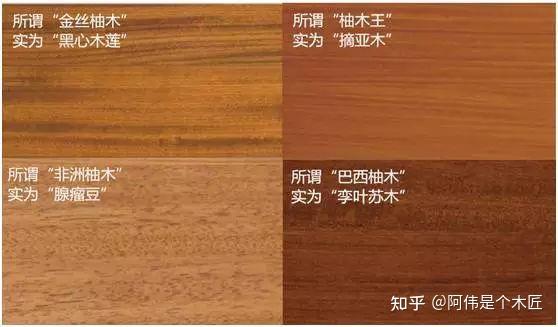 紫檀属:檀香紫檀(印度)(小叶紫檀,印度小叶檀)、安达曼紫檀(印度、安达曼群岛)、刺猬紫檀(热带非洲)、印度紫檀、大果紫檀(缅甸、泰国、老挝)(缅甸花梨、东南亚花梨)、囊状紫檀(印度、斯里兰卡)黄檀属:降香黄檀(中国海南)(海南黄花梨)、越南黄花梨(越南香枝)、阔叶黄檀(印度、印尼的爪哇)(印尼黑酸枝、油酸枝、印度紫花梨)、卢氏黑黄檀(马达加斯加)(马达加斯加黑酸枝、大叶檀)、东非黑黄檀(非洲东部)、巴西黑黄檀(巴西)、亚马逊黄檀(巴西)、伯利兹黄檀(中美洲伯利兹)、紫酸枝(柬埔寨红酸枝)赛州黄檀(巴西)、交趾黄檀(越南、泰国、柬埔寨)(柬埔寨红酸枝、老挝红酸枝、泰国红酸枝)、绒毛黄檀(巴西、中美洲黄檀(墨西哥及南美洲)、奥氏黄檀(缅甸、泰国、老挝)(白酸枝)、微凹黄檀(中美洲)。柿树属:乌木(斯里兰卡及印度南部)(黑檀)、 厚瓣乌木(热带西非)、毛药乌木(菲律宾)、苏拉威西乌木(印尼苏拉威西岛)(印尼黑檀、苏拉威西黑檀)、菲律宾乌木(菲律宾)(印尼黑檀、加里曼丹黑檀)。崖豆属:也叫鸡翅木,非洲崖豆木(非洲刚果盆地)、白花崖豆木(缅甸、泰国)铁刀木属:铁刀木(东南亚、中国云南、广东引种栽培)1.2 缅甸柚木