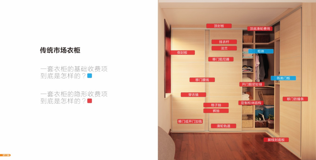 甚至还有防撞条也收费的情况存在比如,还有另一种套路,999元/1.8*2.2m的衣柜,但是不包运输,不包安装。纯粹为了吸引眼球罢了。格局限定,改动任何一小部分就要算非标。