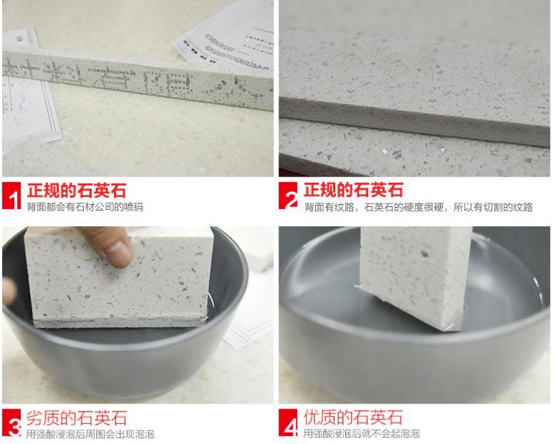 C:石英石台面:石英石在粘合过程中也会用到胶水,劣质杂牌石英石的甲醛,重金属胶水超标,比板材还严重!