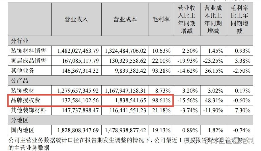 品牌授权费1.33亿,在家居行业能收服务费的不少,但能收品牌授权费的企业,就那几家,再一看这个品牌授权费毛利率高达98.61%!