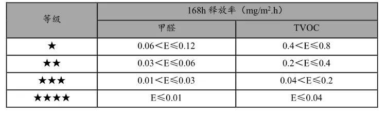TVOC释放率:0.25mg/㎡.h ☆☆