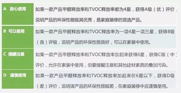 我们选用国际化的检测方法(环境舱法),按照2018年5月发布的国家行业标准JGJ/T436《住宅建筑室内装修污染控制技术规范》测试材料的污染特性,住绿将装修建材的环保性能分为A(优)、B(良)、C(中)、D(差)四个等级。