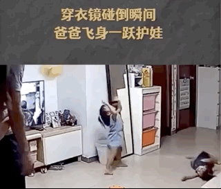一段爸爸飞身护娃的视频