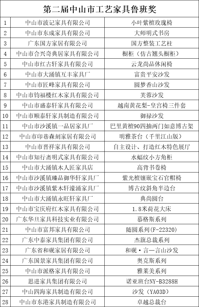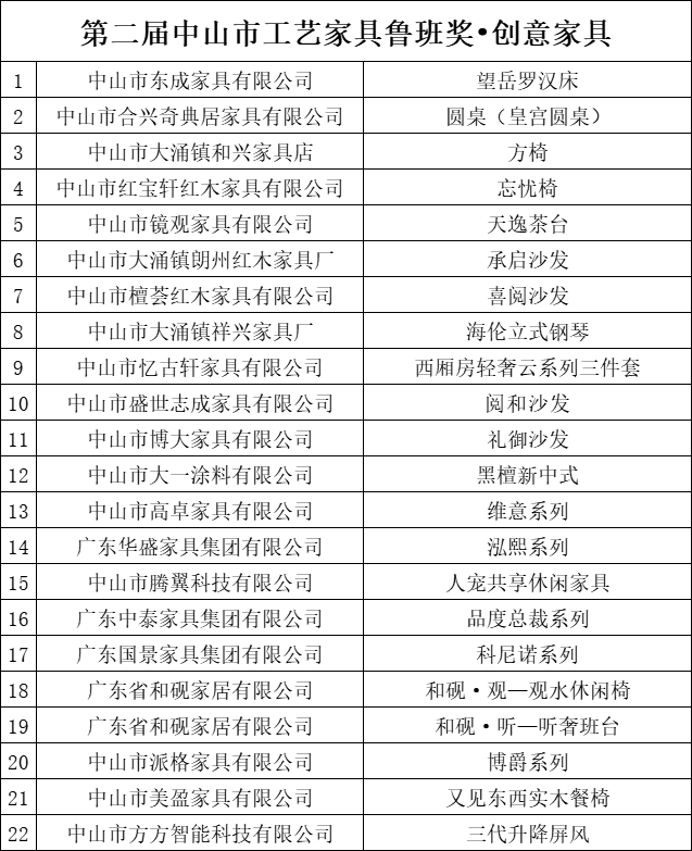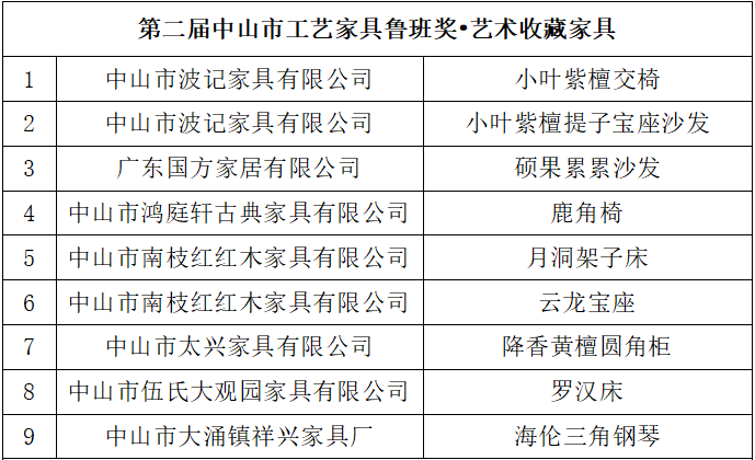 中山市工艺家具鲁班奖揭晓,获奖作品呈现!2