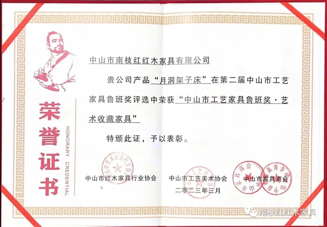 《月洞架子床》,《云龙宝座》荣获“中山市工艺家具鲁班奖、艺术收藏家具”殊荣。