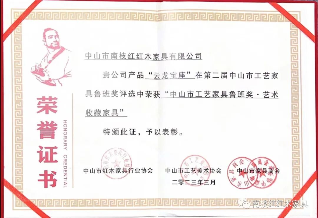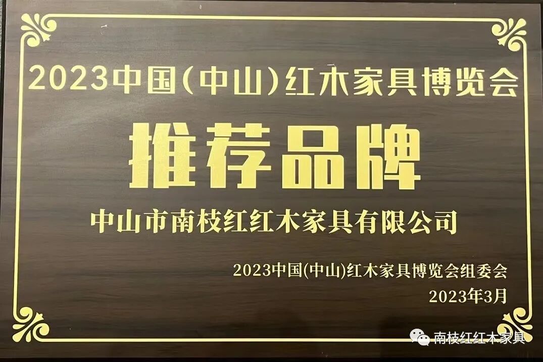 作为行业标杆企业之一南枝红红木家具凭借着系统化的生产体系、精湛的生产技术、和优质的红木家具产品,以实力验证品牌,荣获了“2023年中国(中山)红木家具博览会推荐品牌”这一荣誉称号。