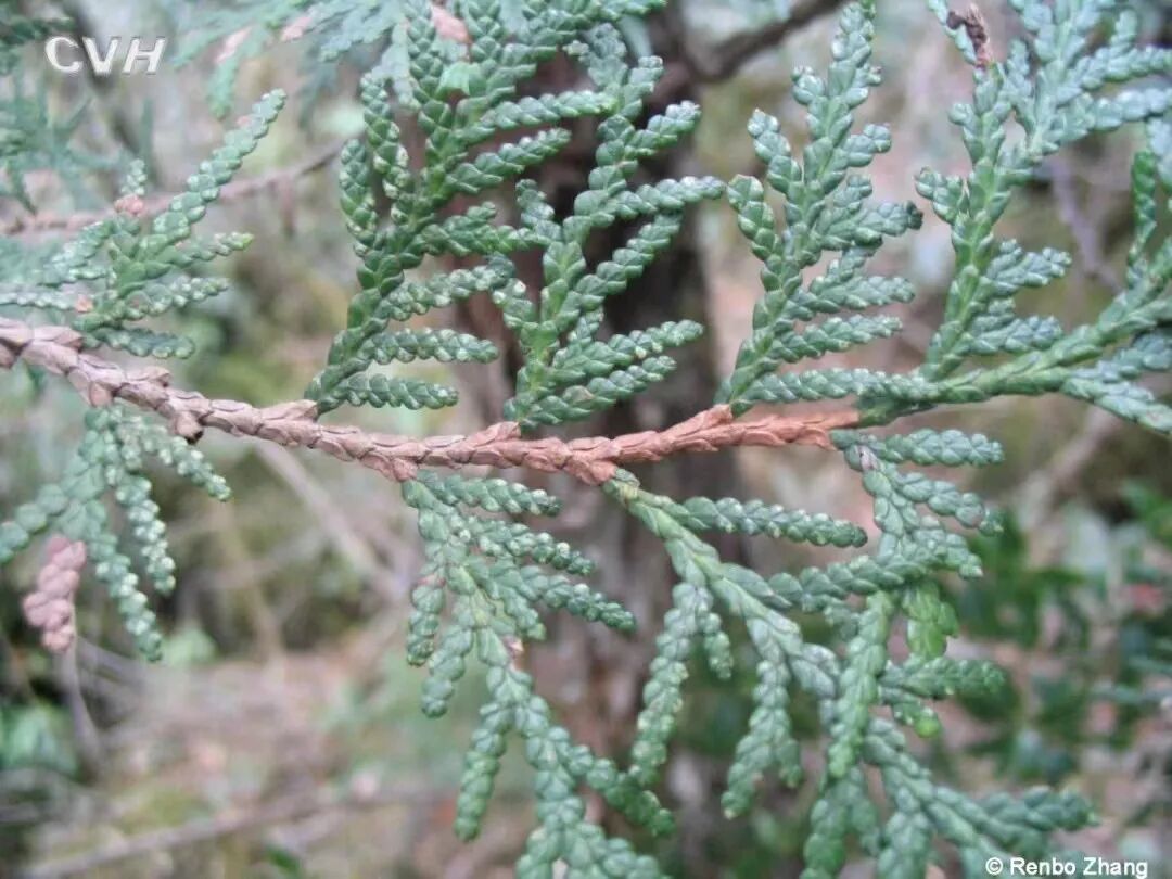 真正的崖柏是柏科崖柏属树种,拉丁学名Thuja sutchuenensis,是我国特有珍稀濒危裸子植物和白垩纪孑遗植物,仅在重庆发现少量野生种群。2021年9月崖柏被列为国家Ⅰ级重点保护野生植物,也被《中国物种红色名录》列为濒危种(EN),严禁采伐。崖柏枝叶,图片来源:PPBC 张仁波 摄。