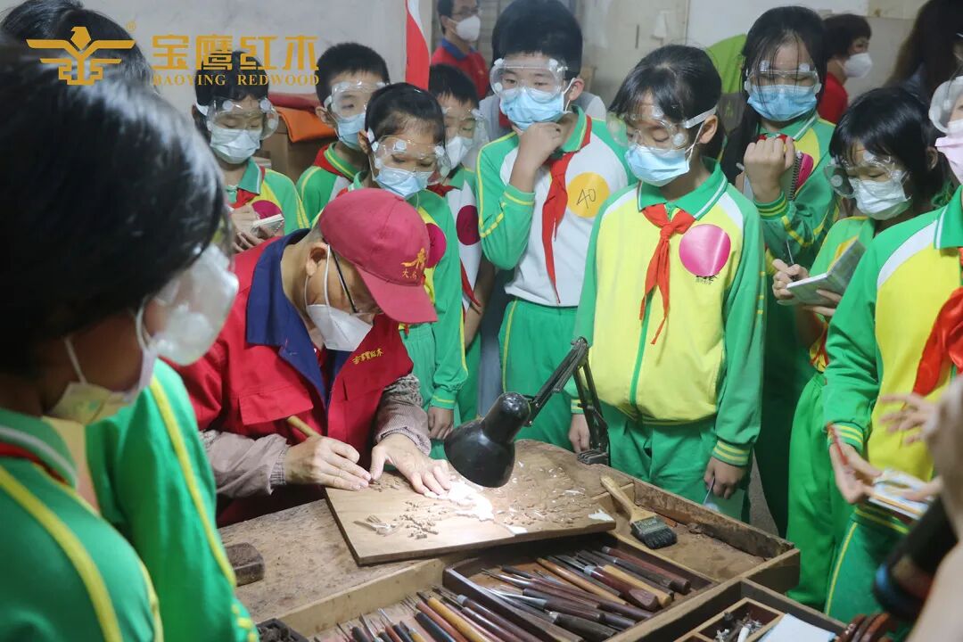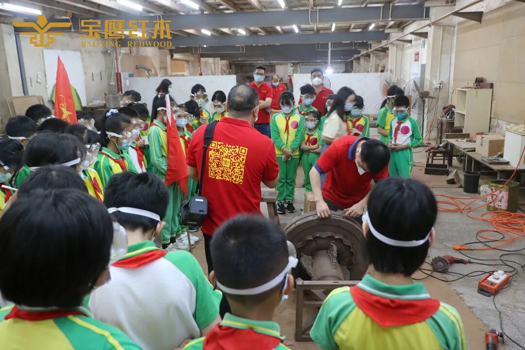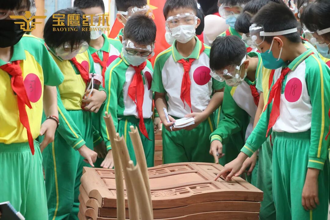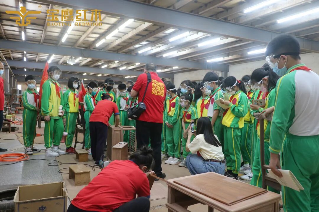 5月11日,广州市番禺区石楼中心小学走进家宝红木,开展主题为“体验红木文化魅力,传承匠心精神”的实践活动,零距离接触红木家具及学习制作过程,感受红木家具的博大精深。