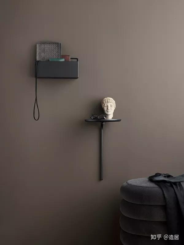 Pujo墙板的造型极其简单,由黑色水曲柳材质的圆形台面和细长的金属支架组合而成,置于墙上,质感十足。安装在玄关处,亦或是床头边,收纳之余就是一个妥妥的艺术品,能给这方寸空间带来不一样的趣味。