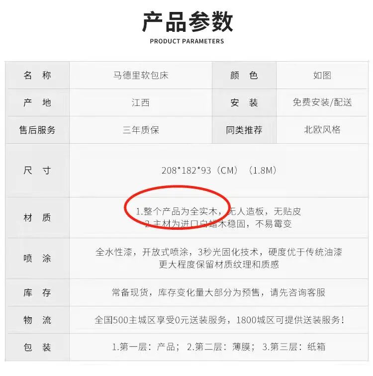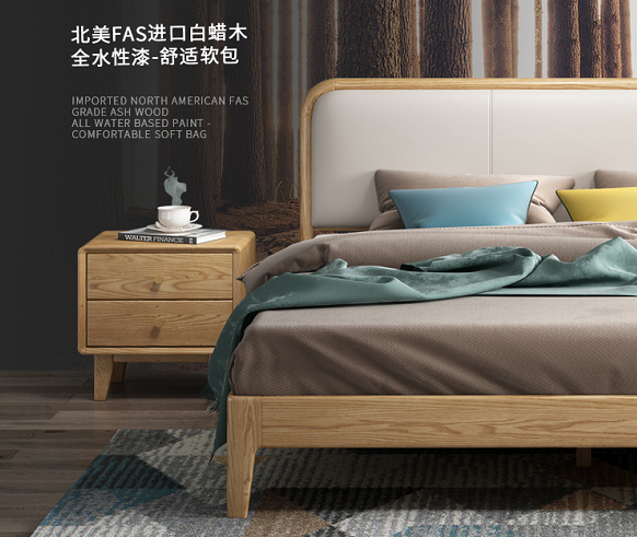 FAS级进口白蜡木+全水性漆,这款马德里软包床想不火都不行。