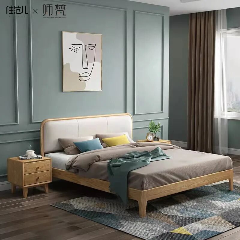 例如师梵原木的马德里北欧实木软包床,甄选北美FAS级进口白蜡木,具有健康无污染、安全稳固、木纹清晰、防潮防腐等特性。