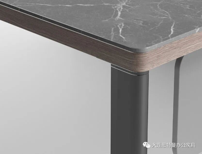 岩图系列是一款岩板材料的胶板类产品,台面有一块 9mm 厚的岩板加上加厚胶板台面,金属脚为铝合金型材,脚底可调节,自然岩板与工业设计完美结合的产物,颜色采用实木原有木纹色与白色搭配,让产品看上去自然大方,加上局部彩色点缀,北欧人生活办公空间的氛围。